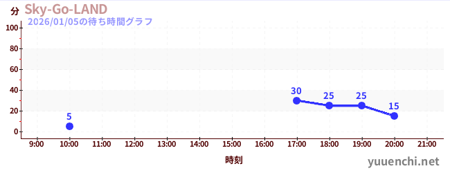 2026/01/05の待ち時間グラフ (Sky-Go-LAND)