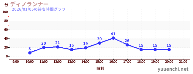 2026/01/05の待ち時間グラフ (ディノランナー)