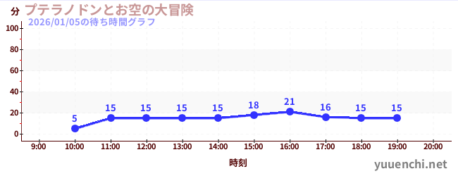 2026/01/05の待ち時間グラフ (プテラノドンとお空の大冒険)