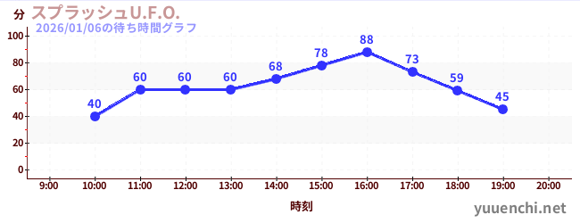 2026/01/06の待ち時間グラフ (スプラッシュU.F.O.)