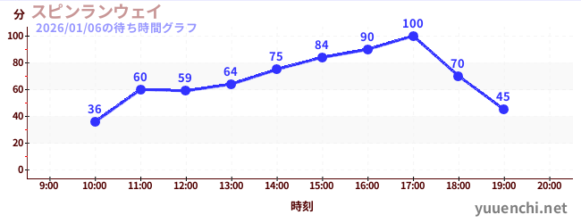 2026/01/06の待ち時間グラフ (スピンランウェイ)