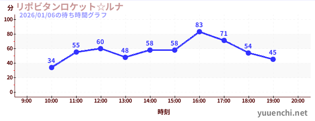 2026/01/06の待ち時間グラフ (リポビタンロケット☆ルナ)