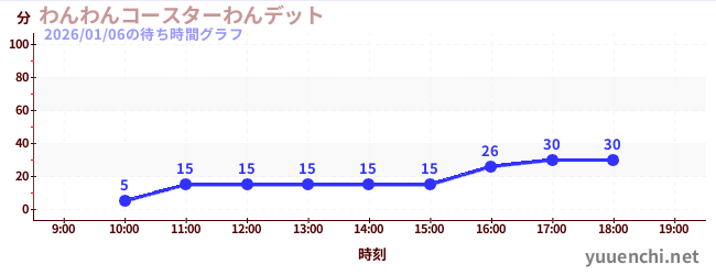 2026/01/06の待ち時間グラフ (わんわんコースターわんデット)