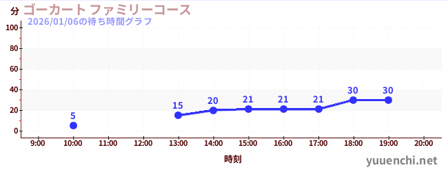 2026/01/06の待ち時間グラフ (ゴーカート ファミリーコース)