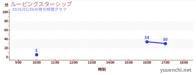 2026/01/06の待ち時間グラフ (ルーピングスターシップ)