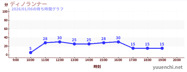 2026/01/06の待ち時間グラフ (ディノランナー)