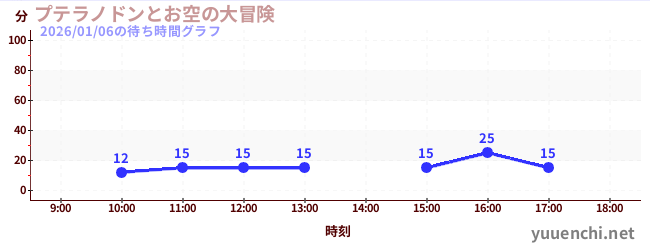 2026/01/06の待ち時間グラフ (プテラノドンとお空の大冒険)