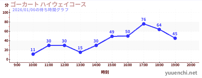 2026/01/06の待ち時間グラフ (ゴーカート ハイウェイコース)