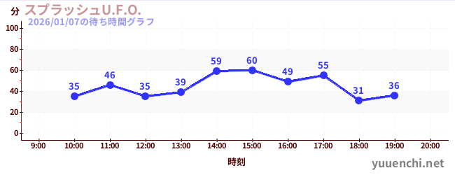 2026/01/07の待ち時間グラフ (スプラッシュU.F.O.)