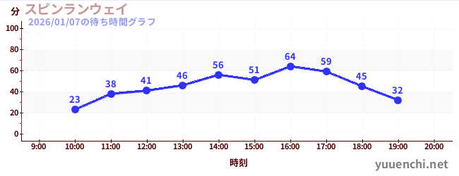 2026/01/07の待ち時間グラフ (スピンランウェイ)