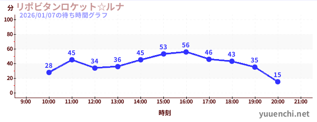 2026/01/07の待ち時間グラフ (リポビタンロケット☆ルナ)