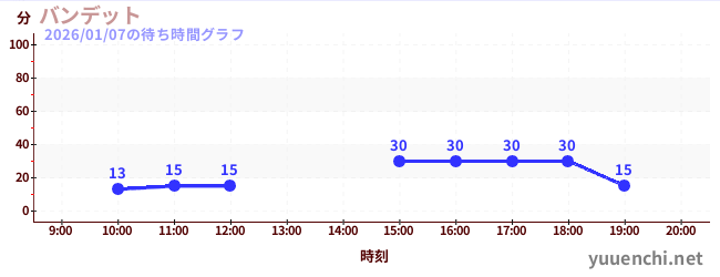 2026/01/07の待ち時間グラフ (バンジージャンプ)
