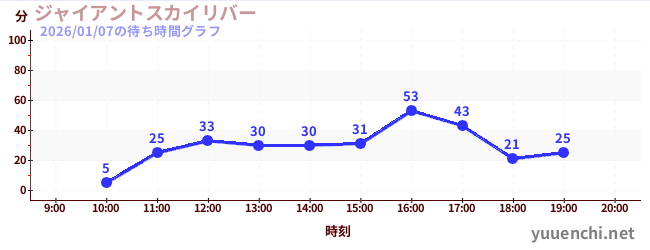 2026/01/07の待ち時間グラフ (ジャイアントスカイリバー)