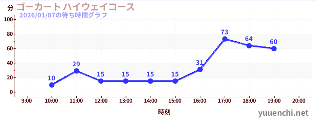 2026/01/07の待ち時間グラフ (ゴーカート ハイウェイコース)