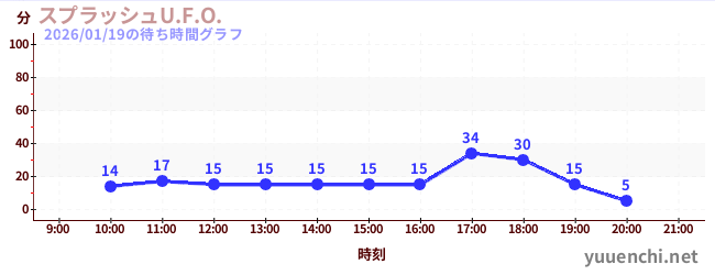 2026/01/19の待ち時間グラフ (スプラッシュU.F.O.)