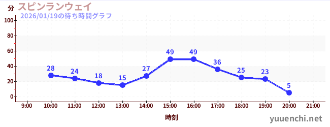 2026/01/19の待ち時間グラフ (スピンランウェイ)
