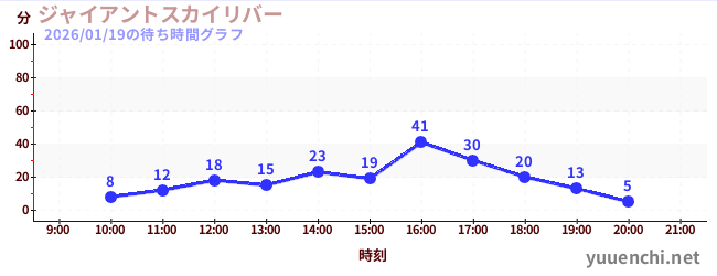 2026/01/19の待ち時間グラフ (ジャイアントスカイリバー)