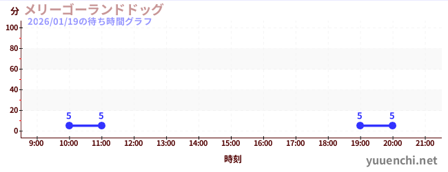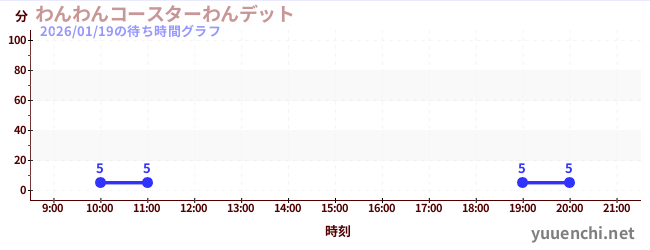 2026/01/19の待ち時間グラフ (わんわんコースターわんデット)