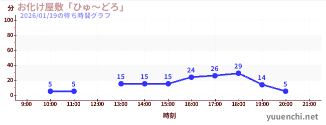 2026/01/19の待ち時間グラフ (お化け屋敷「ひゅ~どろ」)