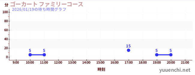 2026/01/19の待ち時間グラフ (ゴーカート ファミリーコース)
