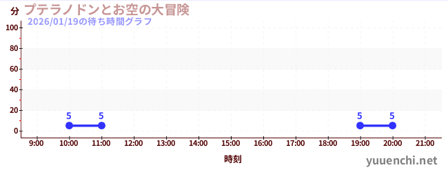 2026/01/19の待ち時間グラフ (プテラノドンとお空の大冒険)