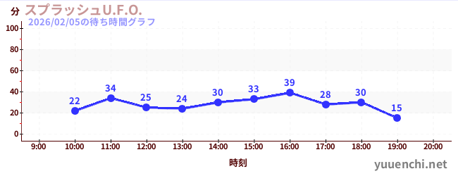 2026/02/05の待ち時間グラフ (スプラッシュU.F.O.)