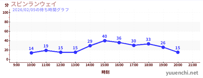 2026/02/05の待ち時間グラフ (スピンランウェイ)