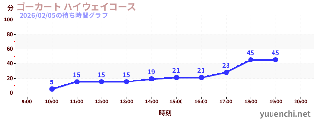 2026/02/05の待ち時間グラフ (ゴーカート ハイウェイコース)