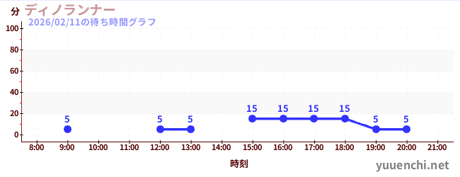 2026/02/11の待ち時間グラフ (ディノランナー)