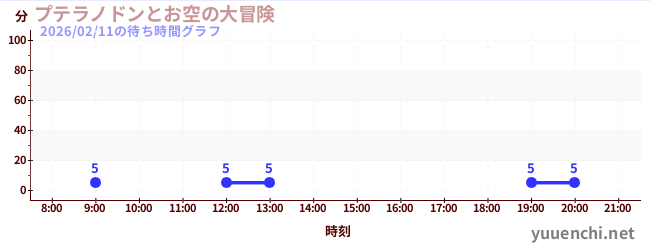 2026/02/11の待ち時間グラフ (プテラノドンとお空の大冒険)
