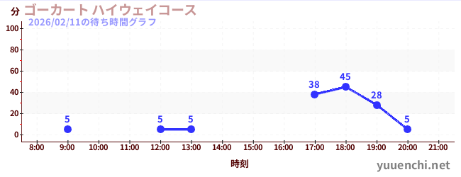 2026/02/11の待ち時間グラフ (ゴーカート ハイウェイコース)