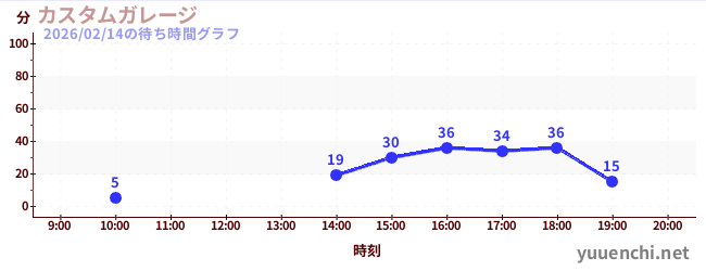 2026/02/14の待ち時間グラフ (カスタムガレージ)