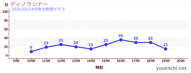 2026/02/14の待ち時間グラフ (ディノランナー)