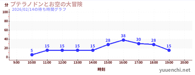 2026/02/14の待ち時間グラフ (プテラノドンとお空の大冒険)