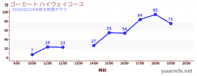 2026/02/14の待ち時間グラフ (ゴーカート ハイウェイコース)
