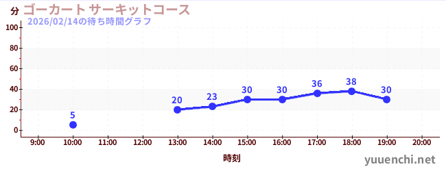 2026/02/14の待ち時間グラフ (ゴーカート サーキットコース)