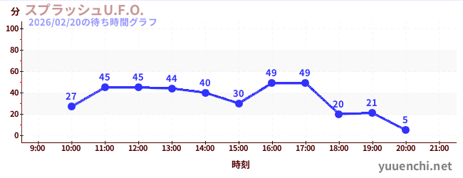 2026/02/20の待ち時間グラフ (スプラッシュU.F.O.)