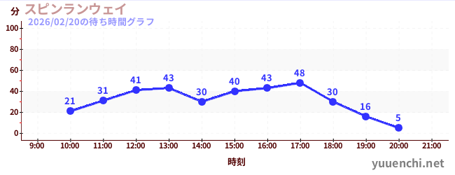 2026/02/20の待ち時間グラフ (スピンランウェイ)