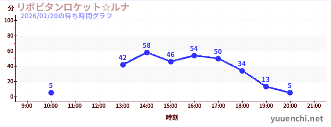 2026/02/20の待ち時間グラフ (リポビタンロケット☆ルナ)
