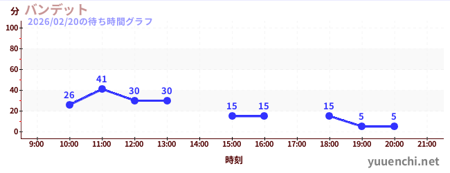 2026/02/20の待ち時間グラフ (バンジージャンプ)