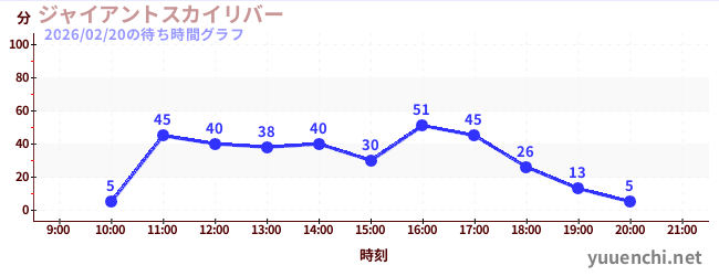 2026/02/20の待ち時間グラフ (ジャイアントスカイリバー)