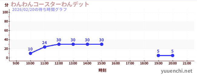 2026/02/20の待ち時間グラフ (わんわんコースターわんデット)