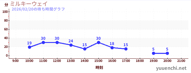 2026/02/20の待ち時間グラフ (ミルキーウェイ ペアシート)