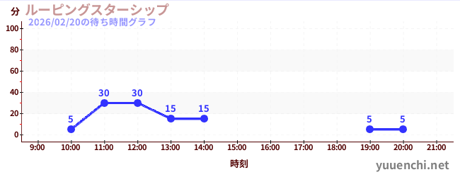 2026/02/20の待ち時間グラフ (ルーピングスターシップ)