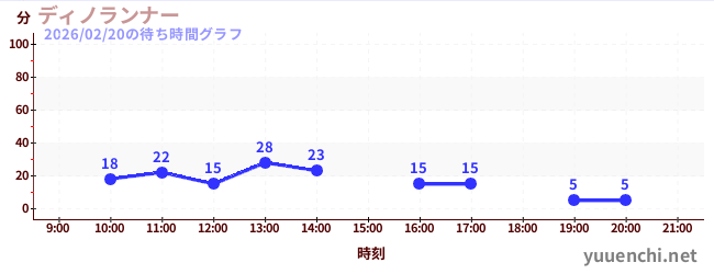 2026/02/20の待ち時間グラフ (ディノランナー)