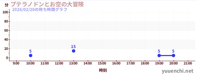 2026/02/20の待ち時間グラフ (プテラノドンとお空の大冒険)
