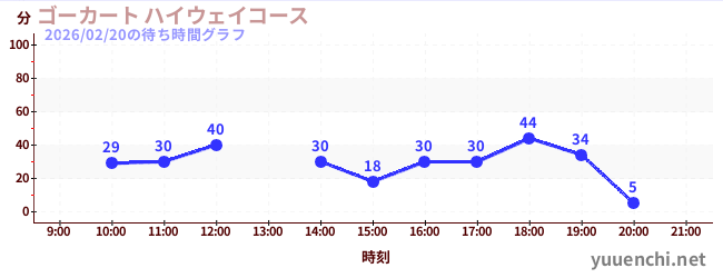 2026/02/20の待ち時間グラフ (ゴーカート ハイウェイコース)