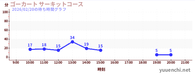 2026/02/20の待ち時間グラフ (ゴーカート サーキットコース)