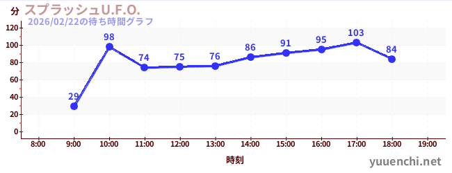 2026/02/22の待ち時間グラフ (スプラッシュU.F.O.)