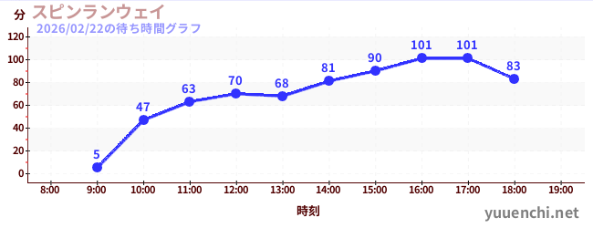 2026/02/22の待ち時間グラフ (スピンランウェイ)